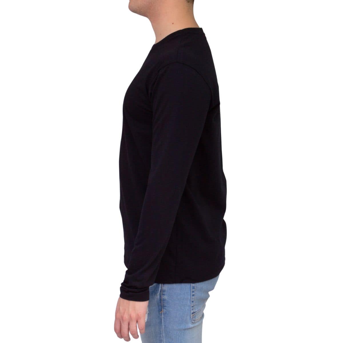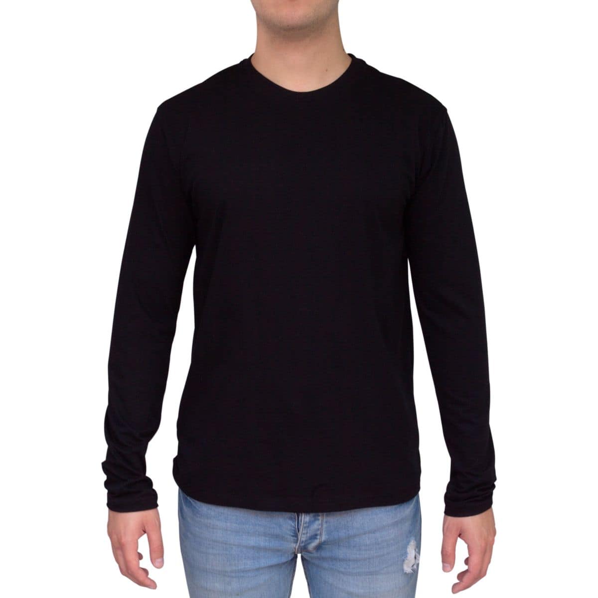 T SHIRT HOMBRE Cuello Redondo Manga Larga 100% Algodón Peinado Premium