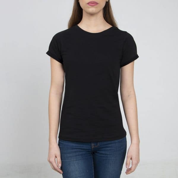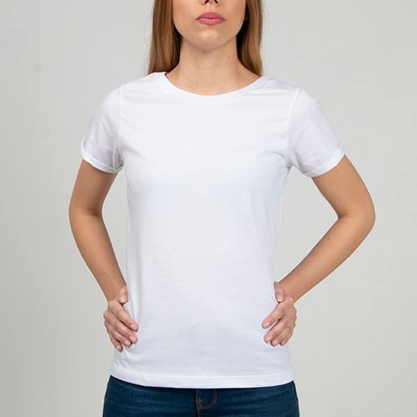 T SHIRT MUJER Cuello Redondo 100% Algodón Peinado Premium Roll Up en Manga