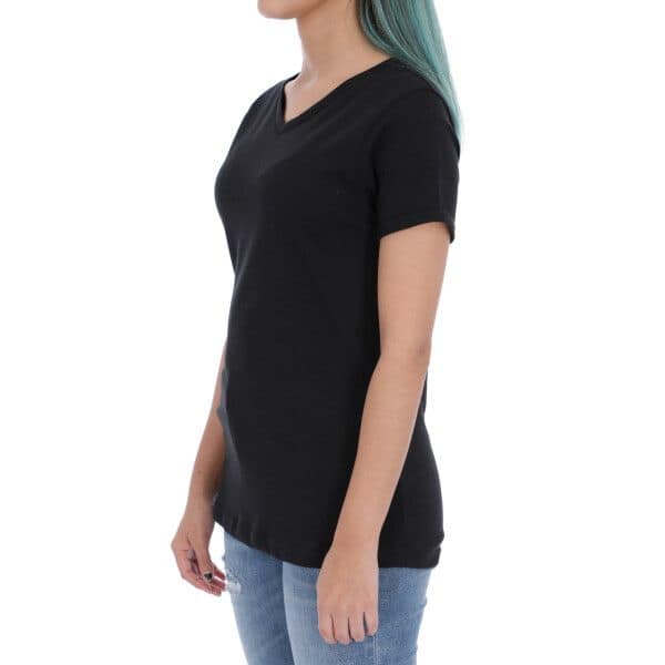 T SHIRT MUJER Cuello V 100% Algodón Peinado Premium Roll Up en Manga