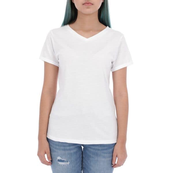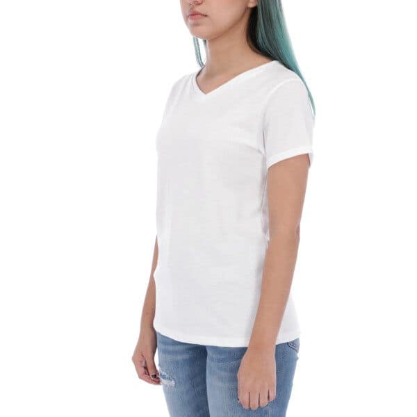 T SHIRT MUJER Cuello V 95% Poliéster 5% Elastano Premium (PARA SUBLIMAR) Medio Roll Up en Manga